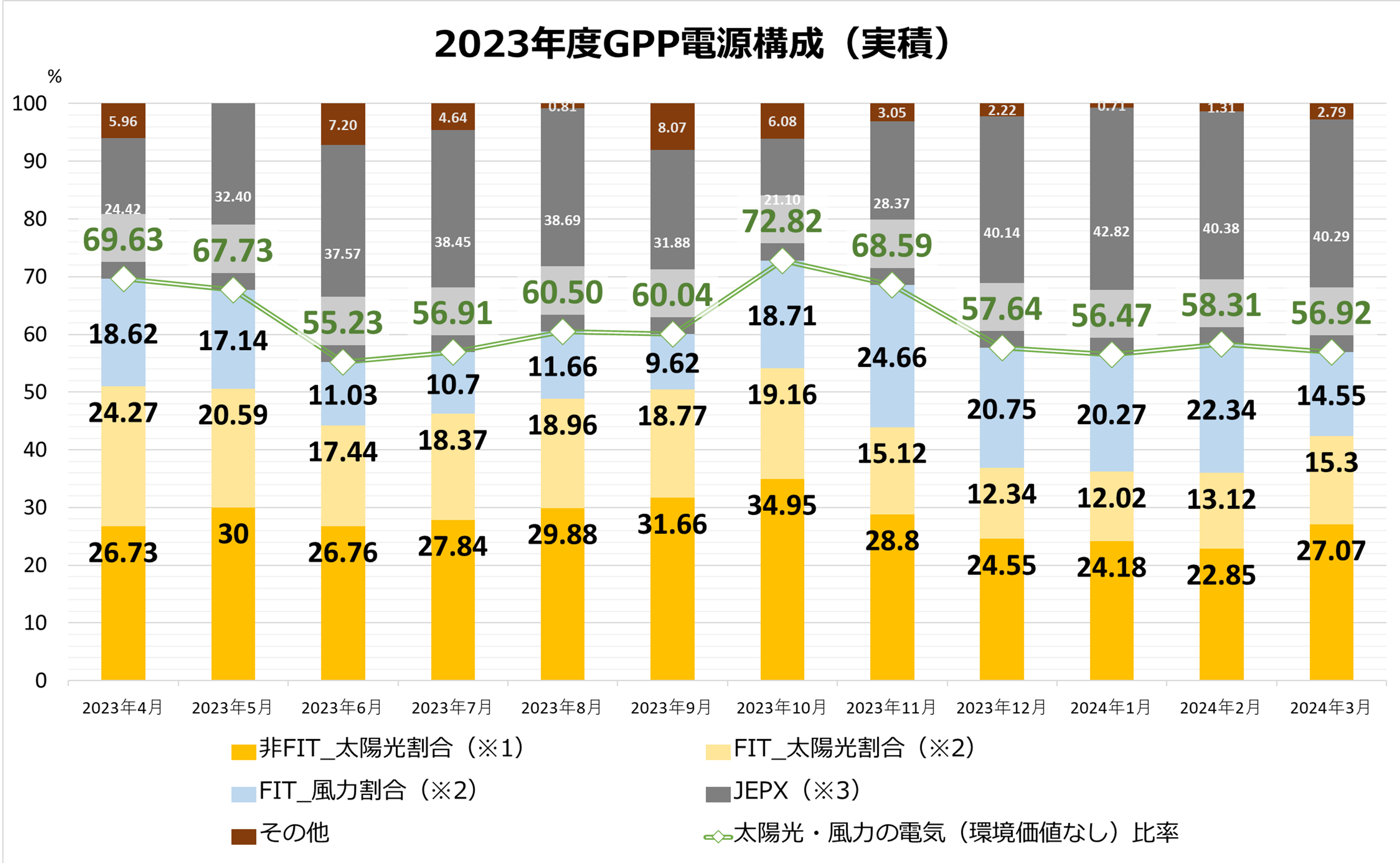 - FIT非化石証書:上記以外の供給量に相当する部分に全て割り当てました。