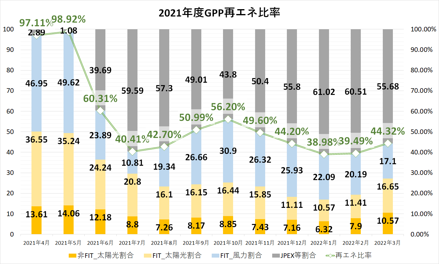 - FIT非化石証書:上記以外の供給量に相当する部分に全て割り当てました。