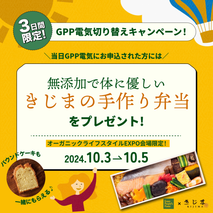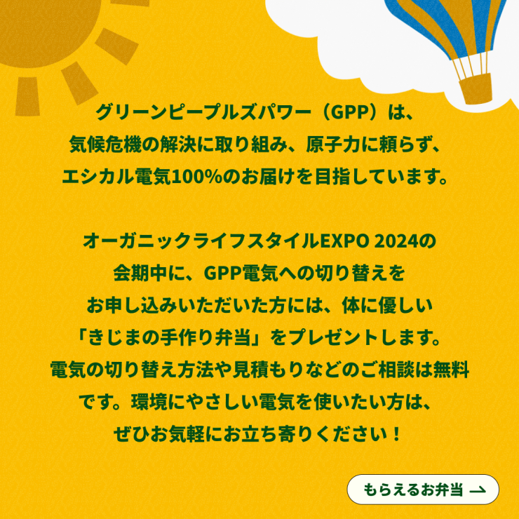 会期中にGPP電気へお申込みいただいた方には、体に優しい「きじま弁当」をプレゼント☆