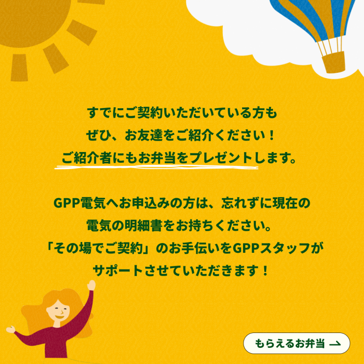 すでにご契約いただいている方も、ぜひお友達をご紹介ください。ご紹介者にもお弁当をプレゼント☆