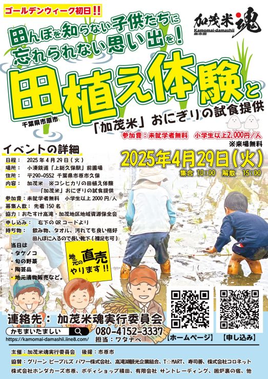 このイベントは、 田んぼを知らない子供たちに「忘れられない思い出」を届けること を目的に開催されます。