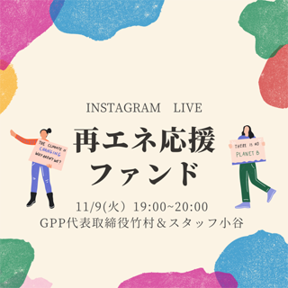 2021/11/10 COP26に参加中の高橋英恵さんとのインスタライブ |  2021/11/9 「GPP再エネ応援ファンド説明」 |