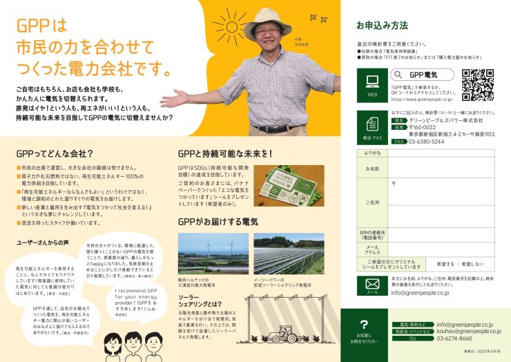 新しいパンフレットは東京エリアに加え、東北と中部が仲間入り。そして供給と買取も同時(別々も可)にお申込みできるように工夫しました。