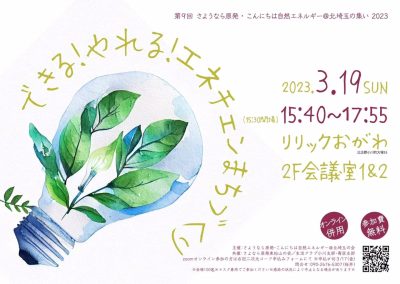 230319ogawamachi 電気のお申込みはこちらから お申込み トップ 添付ファイル 【竹村英明の登壇イベント紹介】第9回さようなら原発・こんにちは自然エネルギー@北埼⽟の集い+Zoom 230319ogawamachi