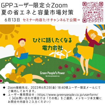 20230613-GPPseminar-movie 電気のお申込みはこちらから お申込み トップ 添付ファイル ◆動画,資料の公開:GPPユーザー限定☆夏の省エネと容量市場対策Zoomセミナー 20230613-GPPseminar-movie