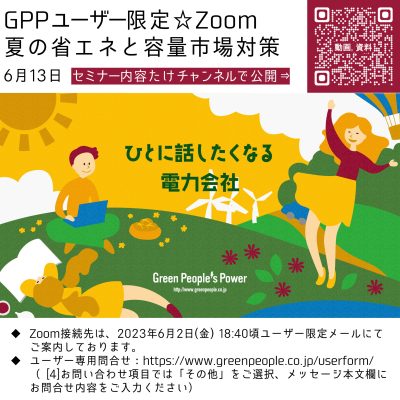 20230613-GPPseminar-movie1 電気のお申込みはこちらから お申込み トップ 添付ファイル ◆動画,資料の公開:GPPユーザー限定☆夏の省エネと容量市場対策Zoomセミナー 20230613-GPPseminar-movie1