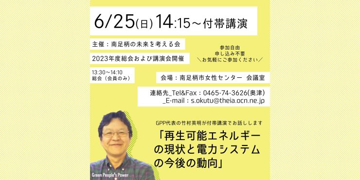【竹村英明の登壇イベント紹介】@南足柄市「再生可能エネルギーの現状と電力システムの今後の動向 | Green People's Power