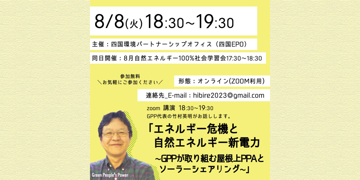 20230808_4epo 電気のお申込みはこちらから お申込み トップ 添付ファイル 【竹村英明の登壇イベント紹介】@Zoomエネルギー危機と自然エネルギー新電力~GPPが取り組む屋根上PPAとソーラーシェアリング~ 20230808_4epo