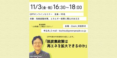 20231103_gpp_wide 電気のお申込みはこちらから お申込み トップ 添付ファイル ◆動画,資料の公開:GPPオンラインセミナー「脱炭素政策は再エネを拡大できるのか」 20231103_gpp_wide
