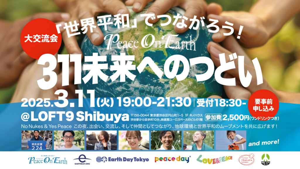 20250310eyecatch 電気のお申込みはこちらから お申込み トップ 添付ファイル 【協力&竹村登壇】3月11日の夜は「世界平和」でつながろう!PeaceOnEarth 311未来へのつどい 20250310eyecatch