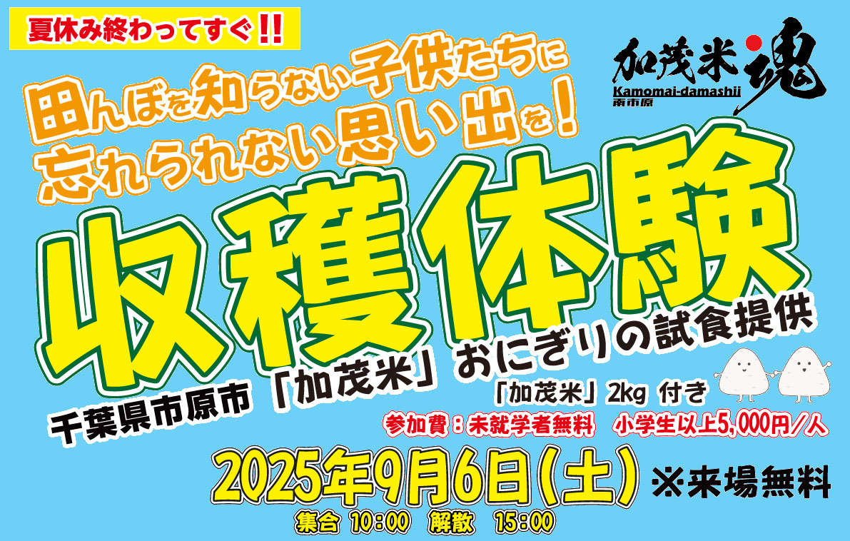 【協賛】加茂米魂 稲刈り体験イベント@千葉県市原市