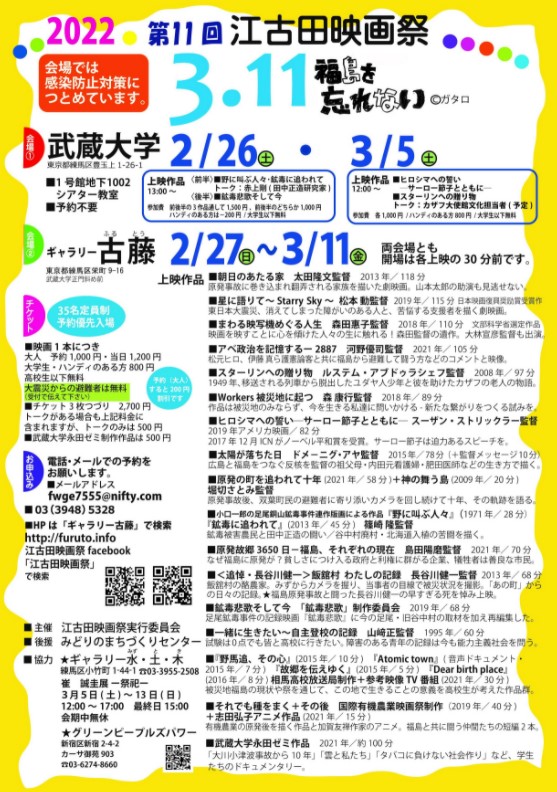 【協力】第11回江古田映画祭 3.11福島を忘れない 2022/2/26~3/11