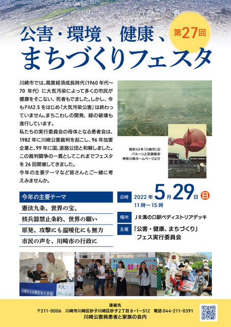 詳しくはこちら⇒公害・環境、健康、まちづくりフェスタ<開催日:2022年5月29日(日)>(「公害・健康、まちづくり」実行員会) | 電子チラシ | かわさき市民活動ポータルサイト~応援ナビかわさき~ (genki365.net)
