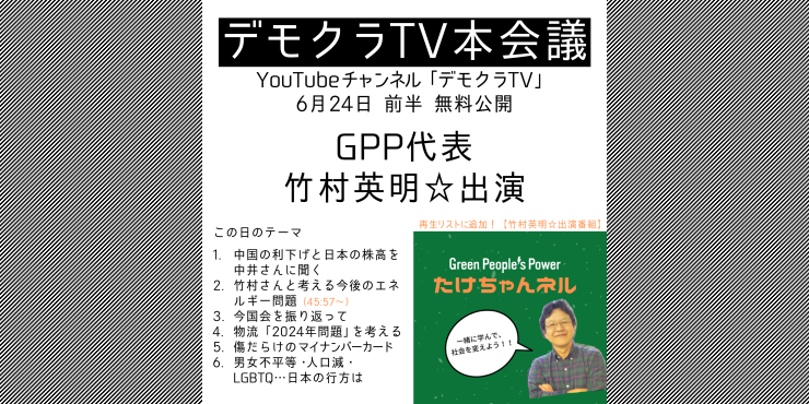 デモクラTVにGPP代表の竹村英明が出演しました。