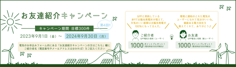 お友達紹介キャンペーン 電気料金1000円相当プレゼント!! 2024/9/30マデ延長