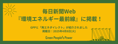 20250408eyecatch 電気のお申込みはこちらから お申込み トップ 添付ファイル 毎日新聞Web『環境エネルギー最前線』にGPPの取り組みが掲載されました(4月8日) 20250408eyecatch