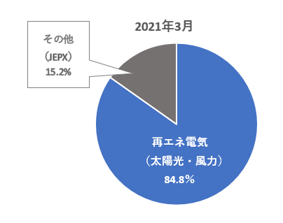 2021年2月に風力発電が加わり、再エネ率が、グーンと増えて84.8%になりました!
