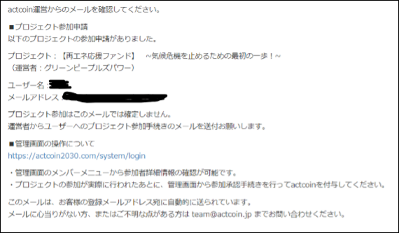 再エネ応援ファンドへの振り込みが確認でき次第、コインを付与します。