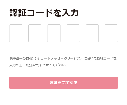 ④入力した電話番号にショートメッセージで送られてくる6桁の認証コードを入力してください。