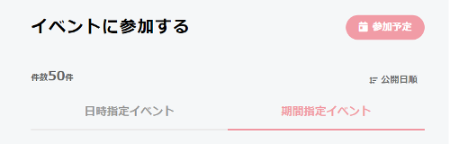 ③参加をクリックすると、「イベントに参加する」というページが出てきます。「日時指定イベント」と「期間指定イベント」という項目がありますので、「期間指定イベント」を選択して「再エネ応援ファンド」が見つかるまで下にスクロールしてください。