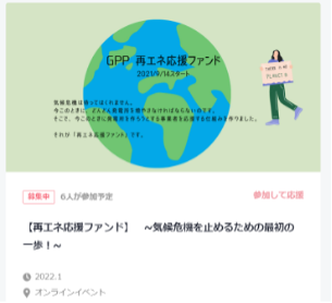 こちらをクリックしていただくと、「再エネ応援ファンド」イベントページに飛びます。